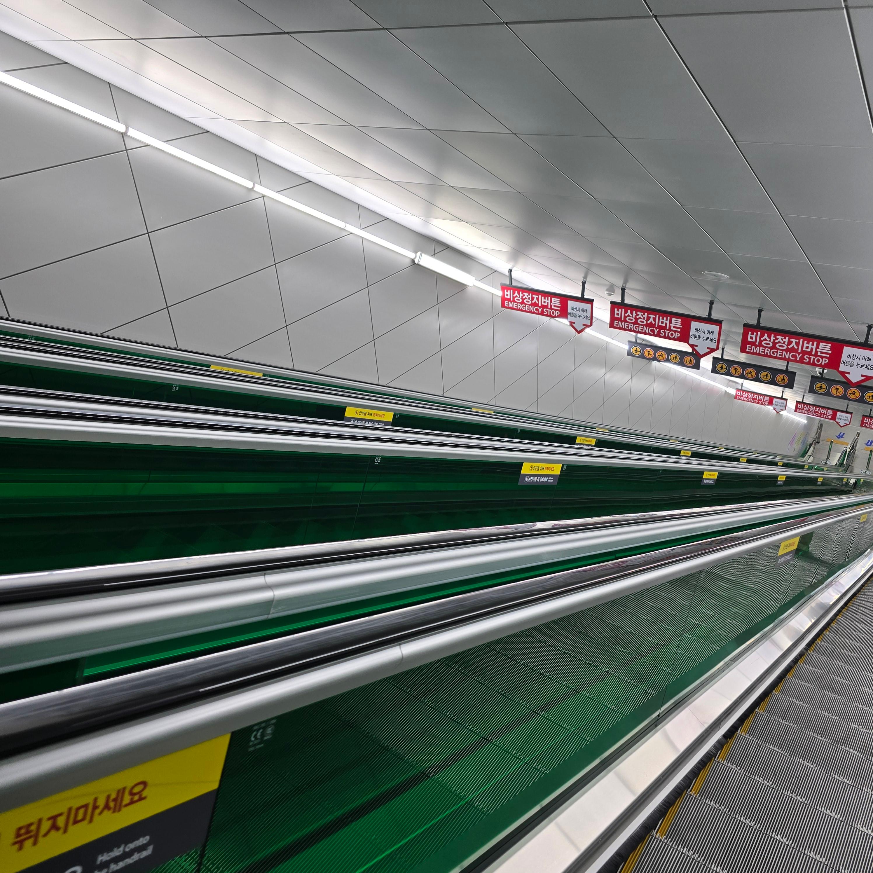 에스컬레이터를 타고 내려가려면 왼쪽으로가시면 됩니다.