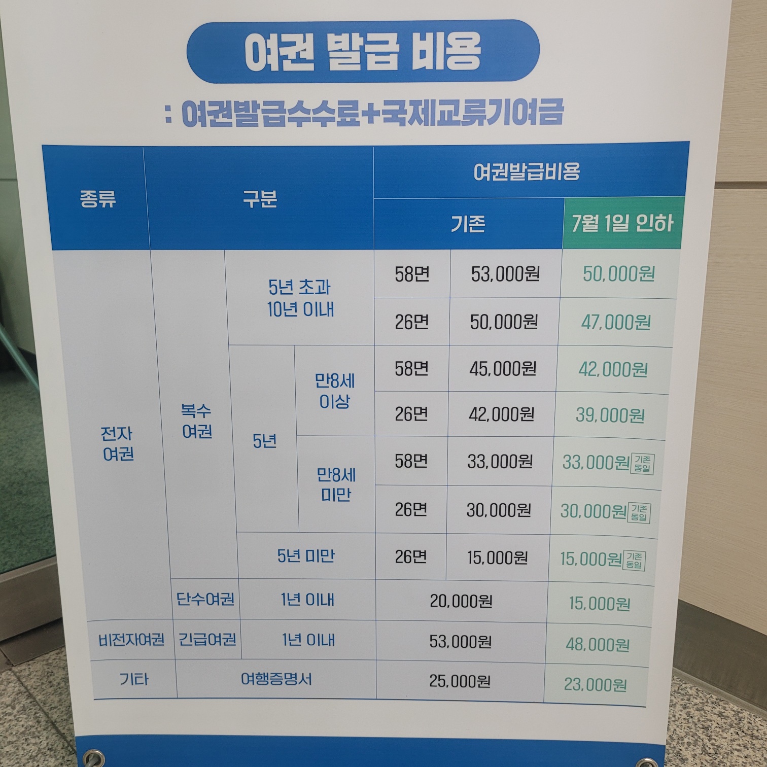 만8세이상 복수여권 (5년) : 58면 여권 : 42,000원