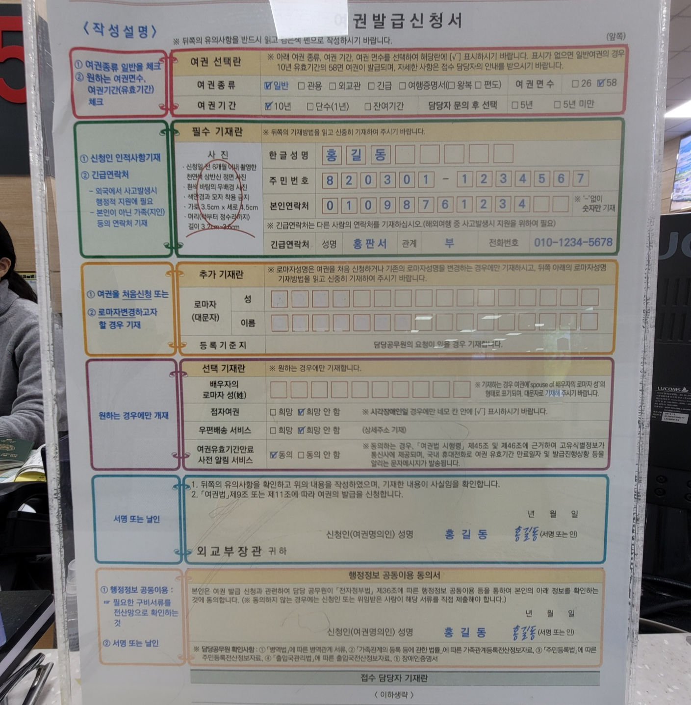 1) 여권발급 신청서